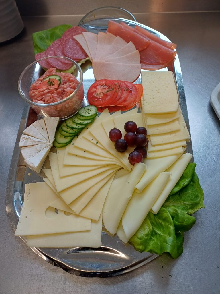 Zum Frühstück gibt es belegte Brötchen mit wechselnden Auflagen, Müslis & Rührei, auch mit Bacon. Dazu Kaffee, Cappuccino, Wiener Melange, Kakao oder eine Vielzahl von Teesorten.
